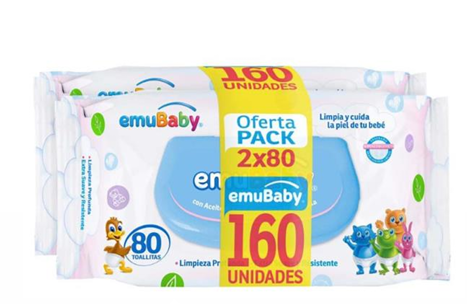 Emubaby Toallas Humedas Pack Con Tapa 2x80 un